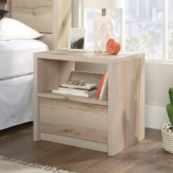 With a minimalist design and convenient bedside storage, this 1-drawer nightstand from the Harvey Park® collection adds simple style and enormous function to your bedroom. This nightstand with open shelf features an easy gliding drawer with metal runners and safety stops that is perfect for storing crossword puzzles, TV remote, and your favorite nighttime read. The open shelf provides you with even additional storage for your reading glasses, journal, and home décor. Use the spacious top surface of this bedside table with drawer for a lamp, alarm clock, photos of your family, and more. Finished on all sides for versatile placement, this nightstand with open storage will look polished and complete from all angles. Finished in Pacific Maple®, a single drawer nightstand is what your bedroom, guest room, or den has been missing all along. We hope you like what you see. Sauder designers travel the world and bring back the best and latest in style, finish, and color trends. This inspiring world travel is evident in the cutting edge and innovative furniture solutions we offer to you!