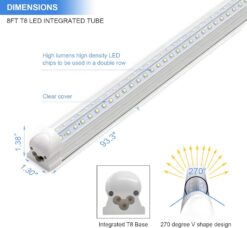 - 【Super Bright】- The 8FT LED shop lights have used high lumens quality LED chips in a double row, high density LED, a V-shaped 270-degree design, and amazing brightness of at least 135lm / watt (Every light has 12000lm output), which can bring the best lighting effect to your application.