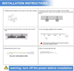 - 【Easy Installation and Linkable】- The 8FT led shop lights could plug and play. Sufficient screws, mount clips, etc. Installation accessories will help you to install quickly and easily. and the 8FT led Shop Light Fixture can be connected up to one by one with seamless connectors or connector wire. (Please connect no more than 4 pieces in series)