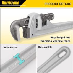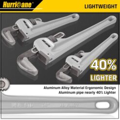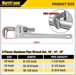 HURRICANE 3-Piece Aluminum Pipe Wrench Set,10″, 14″, 18″, Heavy Duty Adjustable Plumbing Wrench Set, 40% Lighter, Wider Application Range