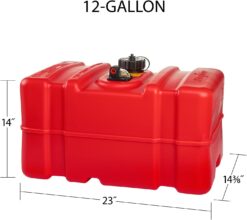 Scepter 12 Gallon Portable Marine Gas Can, Large Capacity Boat Fuel Tank, 2-Way Vented Cap, Built-In Fuel Gauge & Pick-Up, Handles, EPA & CARB Compliant, Tall Profile, 22.9″L x 14.3″W x 13.9″H (08668)