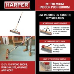 HARPER 24 in. Premium Indoor Hardwood/Steel Handle Push Broom for Sand, Saw Dust, Wood Shavings and Pet Hair
