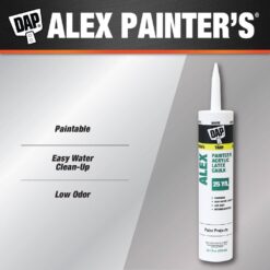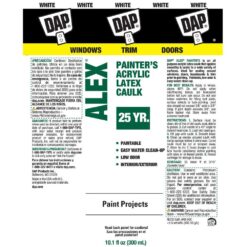 DAP Alex 10.1 oz. Painter’s All-Purpose Acrylic Latex Caulk is ideal for sealing and caulking window and door frames and trim prior to painting with latex or oil-based paint. It adheres to most common building materials. Once applied ensures a durable seal in indoor or outdoor environments.