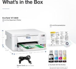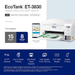 Epson EcoTank ET-3830 Wireless Color All-in-One Cartridge-Free Supertank Printer with Scan, Copy, Auto 2-Sided Printing and Ethernet – The Perfect Printer Productive Families,White