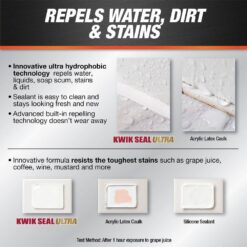 - Kwik Seal Ultra is a kitchen and bathroom sealant that may be exposed to water in as little as 4 hours, is crackproof and has a 100% waterproof seal to protect from moisture