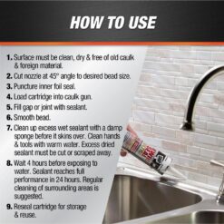 - Top applications for this sealant include kitchen caulk, bath caulk, shower caulk, tub caulk and around fixtures