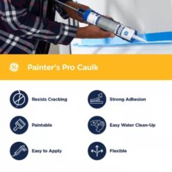 GE Painter’s Pro Caulk is an advanced-grade, 100% waterproof, All-Purpose caulk that’s ideal for decorative paint projects that require a flexible seal. This formulation exceeds ASTM C- 920 for a durable seal that resists cracking on both interior and exterior projects. When fully cured, GE Painter’s Pro Caulk is resistant to stain-causing mold and mildew growth, as well. Paint-ready in just 30-minutes, use our caulk on a variety of latex- and oil-based painting projects, including touching up molding, trim, doors and windows. Our painter’s caulk is also low in odor and VOC content and it’s simple to use because it guns and tools smoothly. The caulk even cleans up easily with just soap and water.