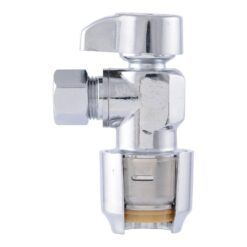 SharkBite Max push-to-connect stop valves are the fastest and easiest way to connect to PEX, copper, CPVC or PE-RT stub-outs, which control and shut off water flow to fixtures or appliances. This newly designed fitting features a stainless-steel collet retainer which delivers additional strength and durability. SharkBite Max fittings and valves don’t require a PEX tube liner and a re-engineered body allows you to insert the pipe using less force and greater ease. The single lever quarter turn handle allows for quick control over water flow, especially in tight spaces. No soldering, clamps, unions, glue or special tools required. After inserting the pipe, stainless steel teeth bite down and grip the pipe tightly while a specially formulated O-ring compresses around the pipe to create a watertight seal. The valve can be rotated after installation for quick adjustments and removing the valve is just as fast with a disconnect tool, allowing them to be changed or reused. (SharkBite push-to-connect fittings are the fastest when compared to other conventual plumbing methods. All other comparisons relate to first generation SharkBite push-to-connect products.).