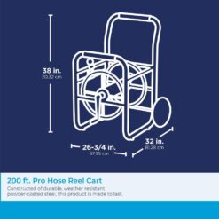 This 200 ft. Professional Grade Hose Cart by Suncast Commercial is perfect for moving and storing your commercial grade or rubber hose. Constructed of durable, weather resistant powder-coated steel, this cart is built to last and can tackle any job you throw at it. Rough terrain is no match against the two 10 in. no-flat rubber tires and the comfortable cushion grip push handles make transporting a breeze. The professional grade hose cart also features an easy swivel grip crank and Slide Track hose guide to help manually assist when winding up your watering hose after a long day of work.