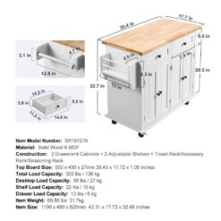 - Versatile functionality: this white kitchen island is an innovative and efficient solution for smaller kitchens or dining spaces, maximizing the use of your room, it can also be used as a kitchen island, bar cart, or mobile coffee station, in addition, it is easy to install with suitable accessories and installation videos