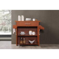 HODEDAH Cherry Kitchen Island with Spice Rack and Towel Holder