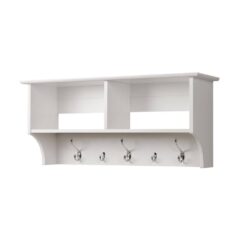 Perfect for townhouses and condos, the 36 in. Wide Hanging Entryway Shelf will help keep your gloves, hats, coats and jackets organized. Suitable for any front hallway, mudroom or home office, it’s two compartments have room for everything from baskets to books. Three large hooks provide sturdy storage for your outerwear, while two smaller hooks are ideal for scarves, purses and bags. Install it easily with our innovative hanging rail system.