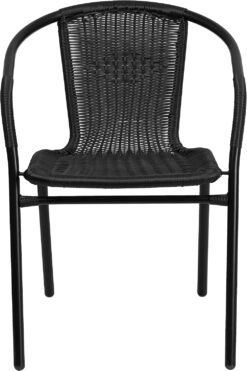 Make the most of bright sunny days and laid back evenings with the Flash Furniture Lila Rattan Outdoor Stack Chairs. This set of 4 patio chairs makes it easy to enjoy time with friends and family in your backyard, patio, sunroom, deck, or porch, and they also make for versatile dining chairs for outdoor restaurants and bistros. A practical choice for any business, the dining chairs boast an elegant woven sculpted look with natural fibers to convey a casual feel and blend seamlessly into almost any existing decor, from contemporary or coastal to preppy and ultra chic. Ergonomically designed, the patio chairs feature a curved back, comfortable rattan seat, and integrated armrests to provide optimal comfort and support for you and your guests so you can enjoy more time relaxing outdoors. The lightweight chairs stack up to 23 high for easy, compact storage in between uses, and cross braces on each chair provide maximum stability when sitting. These outdoor dining chairs measure 21.75″W x 23.5″D x 28.5″H with no assembly required and can hold up to 352 pounds of static weight.
