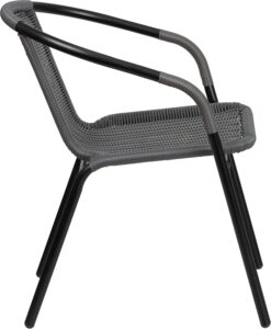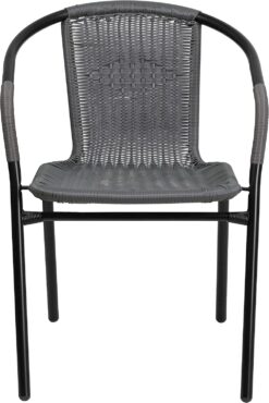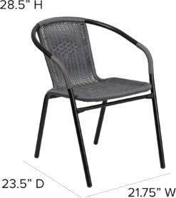 Make the most of bright sunny days and laid back evenings with the Flash Furniture Lila Rattan Outdoor Stack Chairs. This set of 4 patio chairs makes it easy to enjoy time with friends and family in your backyard, patio, sunroom, deck, or porch, and they also make for versatile dining chairs for outdoor restaurants and bistros. A practical choice for any business, the dining chairs boast an elegant woven sculpted look with natural fibers to convey a casual feel and blend seamlessly into almost any existing decor, from contemporary or coastal to preppy and ultra chic. Ergonomically designed, the patio chairs feature a curved back, comfortable rattan seat, and integrated armrests to provide optimal comfort and support for you and your guests so you can enjoy more time relaxing outdoors. The lightweight chairs stack up to 23 high for easy, compact storage in between uses, and cross braces on each chair provide maximum stability when sitting. These outdoor dining chairs measure 21.75″W x 23.5″D x 28.5″H with no assembly required and can hold up to 352 pounds of static weight.