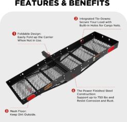 - 750 LBS HEAVY-DUTY CARGO CAPACITY: Maximize your hauling capabilities with this 750 LBS capacity cargo carrier. Perfect for outdoor adventures, moving large items, or freeing up space inside your vehicle, this carrier provides reliable extra storage for whatever you need to transport.
