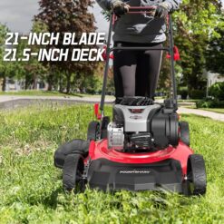 PowerSmart B8621P 21″ 3-in-1 Gas Push Lawn Mower with 140cc 4-Stroke Engine – Wide Cutting Deck, 6 Height Adjustments, Mulching Capability