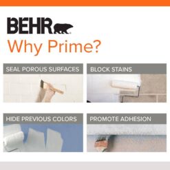 The BEHR Masonry, Stucco and Brick Paint a high-quality, flat acrylic latex paint with a 20-year customer satisfaction guarantee. This interior/exterior, self-priming, alkali and mildew resistant finish also provides excellent adhesion, coverage and water repellency and color retention. Ideal for use on properly prepared interior or exterior vertical surfaces such as stucco, masonry, concrete, concrete block and brick as well as adjacent wood and metal.