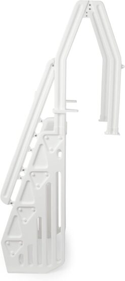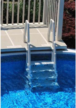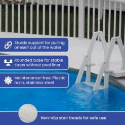 - Reliable Entry & Exit: Stair step in-pool ladder with double handrails offers easy, safe entry and exit into an above-ground pool; Embossed with no diving and no jumping safety reminders