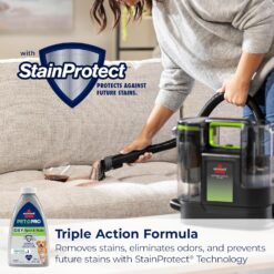 - SPRAY, SCRUB, AND SUCTION. TRIPLE ACTION cleaning removes tough set-in pet messes like muddy paw prints, embedded dirt, bio messes, and more.