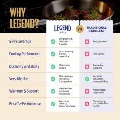 - · 𝐓𝐇𝐄 𝐏𝐀𝐍. 𝐓𝐇𝐄 𝐌𝐘𝐓𝐇. 𝐓𝐇𝐄 𝐋𝐄𝐆𝐄𝐍𝐃 – This Legend stainless steel cooking set is built to last a lifetime. Designed from the inside out, this high-quality pots and pans set is perfect for serious home cooks, and great for novices to learn on. The 5 layers are chosen for rapid & even heating, heat retention, and cooking stability. Each piece is carefully assembled and the handles firmly riveted on, making them ideal for moving soups, stews, roasts, braises, and other heavy dishes around your stovetop.