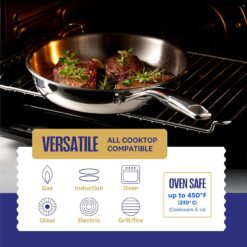 - · 𝐕𝐄𝐑𝐒𝐀𝐓𝐈𝐋𝐄 𝐈𝐍 𝐀𝐍𝐃 𝐎𝐔𝐓𝐒𝐈𝐃𝐄 𝐓𝐇𝐄 𝐇𝐎𝐌𝐄 – The 5 Ply Stainless Steel Cookware Set can be used with any kitchen setup: electric, gas, glass, or induction. It can go from stovetop to oven, for true one-pot meal cooking. You can even take it along for cookfire camping or tailgate grilling. This set includes: 8-quart stockpot; 10-inch frying pan; 12-inch frying pan; 8-inch frying pan; 1.5-quart saucepan; 3-quart saucepan; 5-quart Dutch Oven; and 5-quart sauté pan. All with heavy, custom fitted lids.