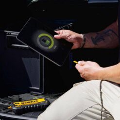 The DEWALT 1600 Peak Amp Lithium Jump Starter, DXAELJ16 is a portable jump starter and USB power bank in a small take-along size. 1600 peak amps of starting power instantly jump starts cars and trucks up to 8-cylinders. Charge up the internal battery and get up to 35 jump starts. Powder-coated metal clamps are included. The reverse polarity protection assures that jumper cables are connected correctly. The mini powerpack features both 3.1A USB-A & USB-C charging ports and a fully charged battery can charge up a tablet, 19 AirPods, 2 smart phones, 25 smart watches, 6 cameras, etc. (Based on internal testing and may vary depending on multiple factors such as storage conditions and frequency of use.) The bright LED light helps with repairs after dark. 1-year warranty.