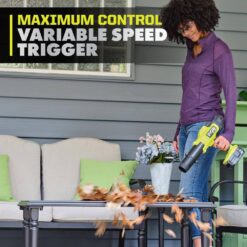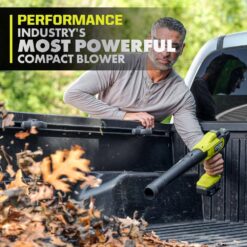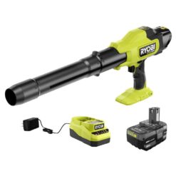 The RYOBI 18V ONE+ HP Compact Brushless 220 CFM Blower Kit delivers 65% more power for exceptional performance without the hassle of cords or gas, and it’s industry’s most powerful compact blower. ONE+ HP technology combines a powerful brushless motor, advanced electronics, and lithium technology to deliver 220 CFM and 140 MPH, making it ideal for clearing hard surfaces such as garages, patios, vehicles, and more. Achieve 50 of runtime using an 18V ONE+ 4Ah battery. This blower has the best-on-class power to size ratio and is part of our COMPACT SERIES. Our compact tools are the lightest & smallest we’ve ever made delivering optimal power to get the job done. At less than 4 lbs. & 16″ long, it is smaller and more ergonomic than a traditional blower, easily clearing debris from tight, hard to access spaces. The two extension tubes can be combined to provide extended reach, adding up to an additional 20″. Swap between the included speed tip for increased MPH or flat nozzle for wider coverage. The variable speed trigger gives you maximum control in delicate areas, and a lock on trigger allows for continuous use without holding down the trigger. Best of all, it’s part of the RYOBI ONE+ system – Any 18V ONE+ battery works with any 18V ONE+ product. This blower and battery are backed by the RYOBI 3-year manufacturer’s warranty and includes the PSBLB01 18V Blower, PBP005 18V 4Ah Lithium Battery, PCG002 18V Charger, (2) Extension Tubes, Speed Tip, Flat Nozzle, and Operator’s Manuals.