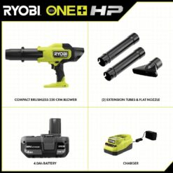 RYOBI PSBLB01K ONE+ HP 18V Brushless Cordless 220 CFM 140 MPH Compact Leaf Blower with 4.0 Ah Battery & Charger