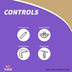 - Controls listed insects without harming beneficial insects; listed insects include cabbage looper, hornworms, tent caterpillar and more