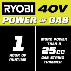 - Trimmer: Part of the RYOBI 40V System – Any 40V Battery Works With Any 40V Product