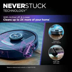 - WON’T GET STUCK FOR UP TO 2x MORE COVERAGE*: NeverStuck Technology ensures you don’t have to babysit your robot. It lifts & lowers to maneuver over obstacles, across thresholds, and easily avoid getting stuck (* Based on internal stuck protocol vs. Shark RV750).
