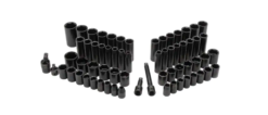 - Set includes one 1/2 in. impact extension bars one 1/2 in. to 3/8 in. drive impact adapter one 1/2 in. drive impact universal joint, 30 standard impact sockets – SAE: 3/8 in. to 1-5/16 in. and metric: 13 mm to 27 mm 30 deep impact sockets: SAE – 3/8 in. to 1-5/16 in. and metric – 13 mm to 27 mm