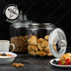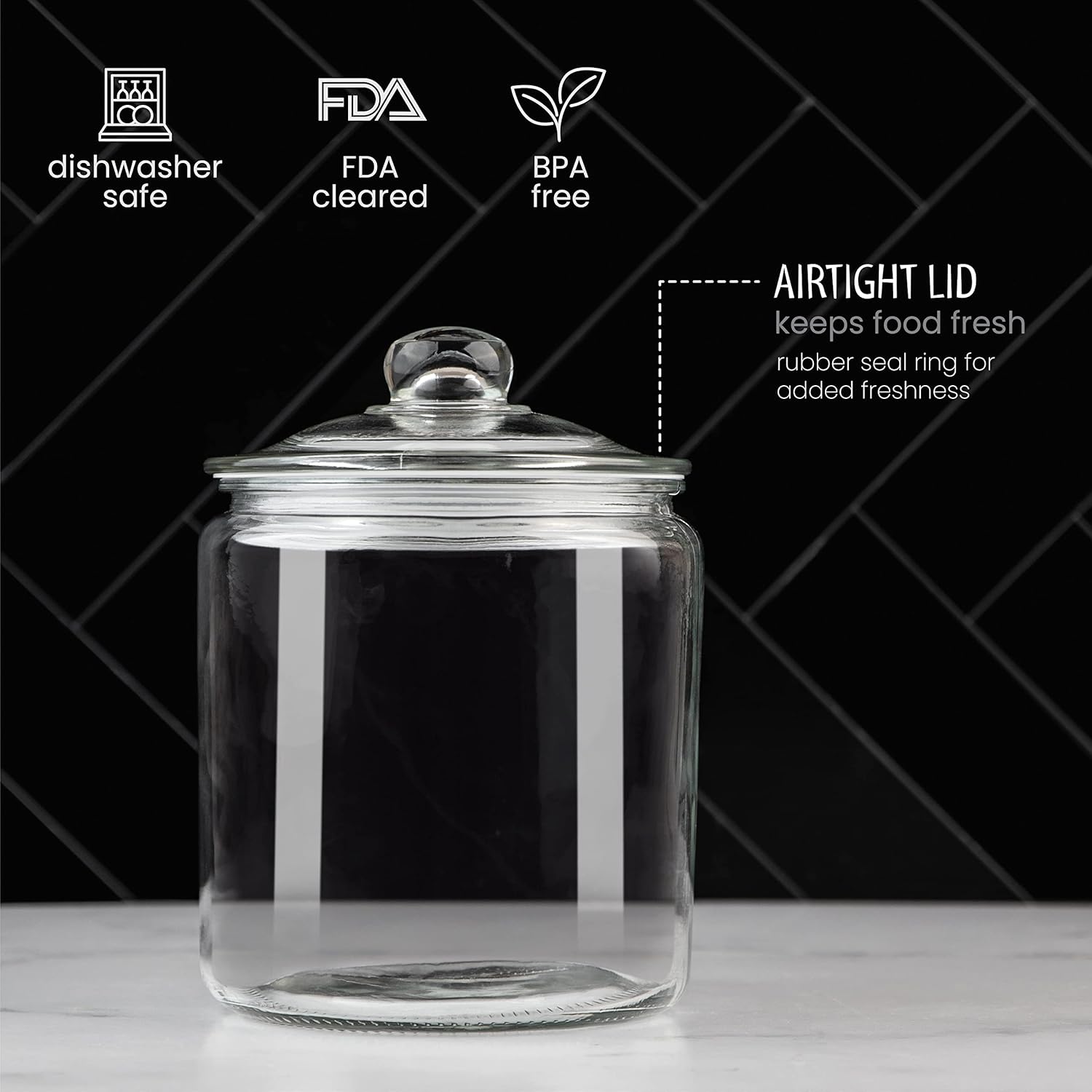 1 Gallon Glass Cookie Jar – Large Food Storage Container with Airtight Lid – Keep Fresh Flour, Chewy Pet Treats, Candy, Dried Foods, Detergent Pods for Your Kitchen or Laundry Room- Pack of 2