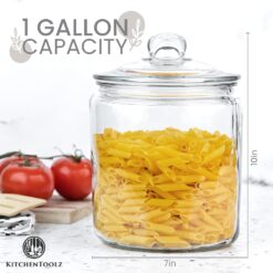 - LARGE FULL GALLON CAPACITY: These large glass jars are great for cookies, candies, beans, legumes, pasta, cosmetics, and more