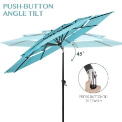 4.Unique 3 Tier Design:The 3 tier patio umbrella with dual wind vents facilitate the air flow and heat ventilation and reduce wind pressure to enhance stability; Adding fashion and elegance, perfect for your patio, garden, deck, pool and beach