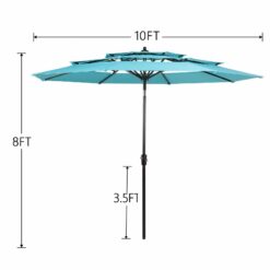 The 10ft patio 3 tier umbrella provides a large shade area for your patio space.