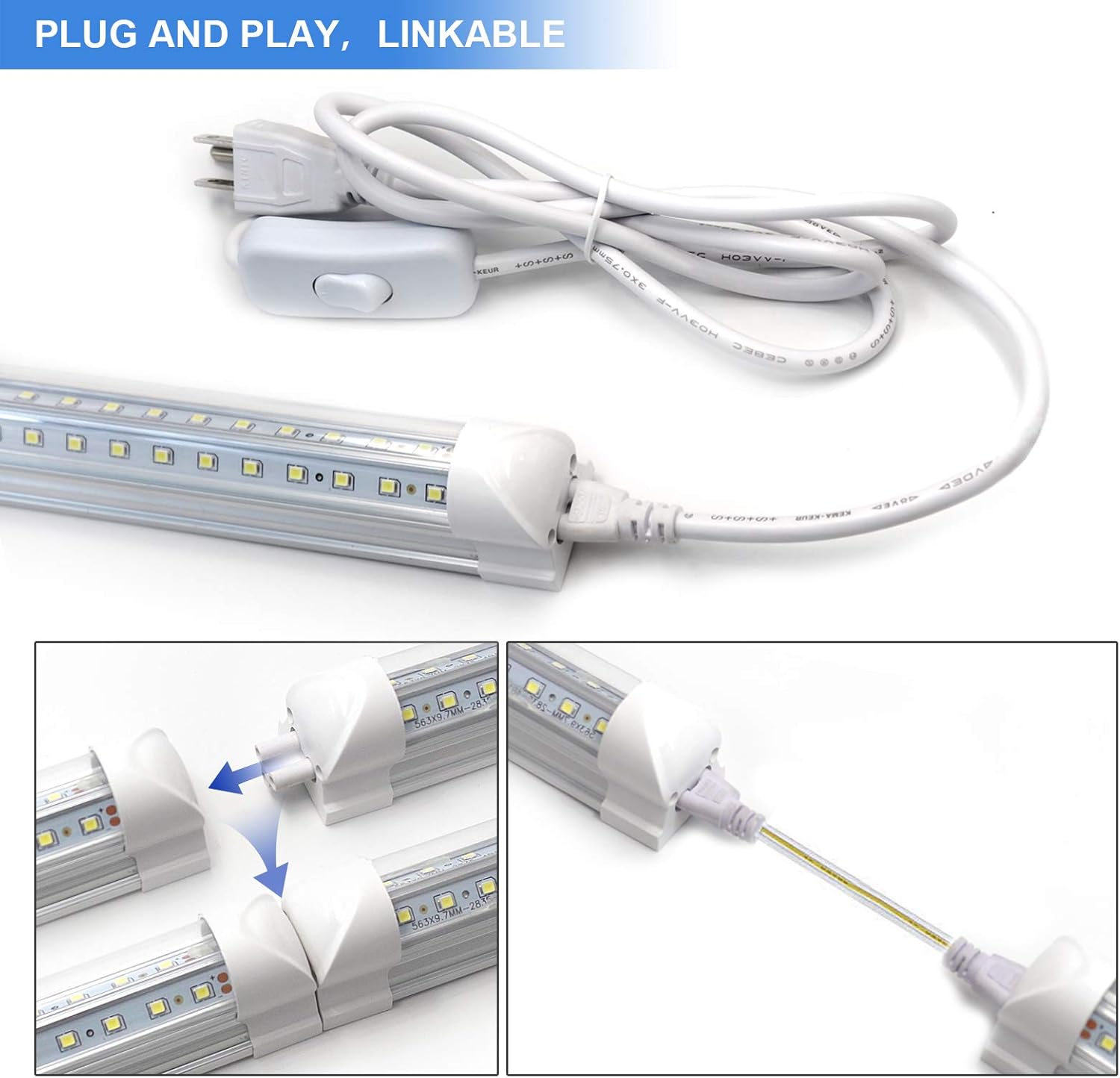 - 【Super Bright】- The 8FT LED shop lights have used high lumens quality LED chips in a double row, high density LED, a V-shaped 270-degree design, and amazing brightness of at least 135lm / watt (Every light has 12000lm output), which can bring the best lighting effect to your application.