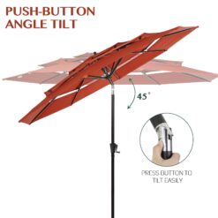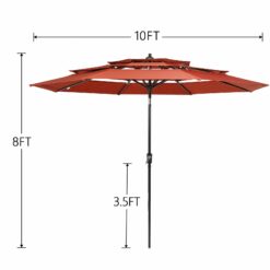 10ft Patio Umbrella Outdoor 3 Tier Vented Market Table Umbrella with 1.5″ Aluminum Pole and 8 Sturdy Ribs, (Orange Red)