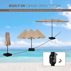 More Shade: 15 feet diameter patio umbrella offers complete shade space with its extra-large double-sided design. Ideal for both commercial and residential locations, such as garden, backyard, pool, beach and any other outdoor area