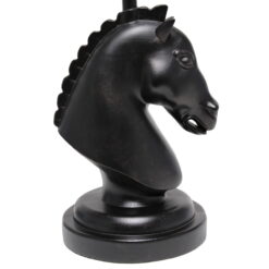 17.25″ Tall Polyresin Decorative Chess Horse Shaped Bedside Table Desk Lamp with White Tapered Fabric Shade – Black
