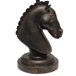 This Creatively Designed Table Lamp Base Is Shaped Similarly To That Of A Knight In Chess, With Lovely Detail Ranging From The Mane Down To The Mouth Of The Horse. Available In A Variety Of Base Finishes, All Pair Perfectly With The Tapered White Fabric Shade To Compliment Your Decor Or Act As An Accent Piece While Illuminating Your Space. Unique Lamp Style: Fun, Stylish, And Unique! A Lovely Horse Shaped Base In Dark Bronze Stands On A Matching Round Base And Sits Beneath A Crisp White Fabric Shade Made Of Linen. Accessible Switch: An Easily Accessible Gear (Rotary) Switch Is Located On The Cord Of This Table Lamp To Allow A Quick And Easy On/Off Function As Needed. Lamp Is Also Equipped With A 5 Foot Black Plug In Cord Rooted At The Base, Perfect For Spaces That Need A Little Room Between The Outlet And Desired Location Of The Size: Overall Product Size Is L: 9″ X W: 9″ X H: 17.25″ And Weighs 2.43 Lbs. The Shade Of This Lamp Measures Dia: 9″ X H: 8″.Assembly & Use: Product Ships Assembled And Will Only Require You To Secure The Lamp Shade To The Base Using The Provided Socket Nut Prior To Use. Bulb Requirement Sold Separately: This Table Lamp Uses 1 X 40 Watt Type A19 E26 Medium Base Bulb, Which Is Not Included In Your Purchase But Can Be Easily Found Online Or Your Local Hardware Store. Additional Base Options Available: This Lamp Is Sold In Additional Base Color Options. If This Specific Color On The Base Doesn’T Perfectly Match Your Space, Make Sure To Check Out All Available Colors!
