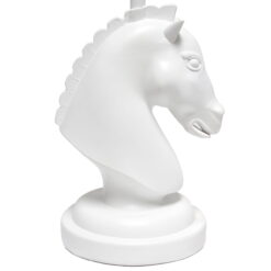 17.25″ Tall Polyresin Decorative Chess Horse Shaped Bedside Table Desk Lamp with White Tapered Fabric Shade – White Description: