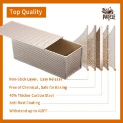 - 【What makes it unique ?】The loaf pans for baking bread are crafted from durable carbon steel, able to withstand high temperatures up to 420°F without harmful chemicals. The corrugated design resists dust buildup and simplifies cleaning. Rounded edges make handling easier. These French bread loaf pans feature three quality layers for anti-rust and non-stick properties.