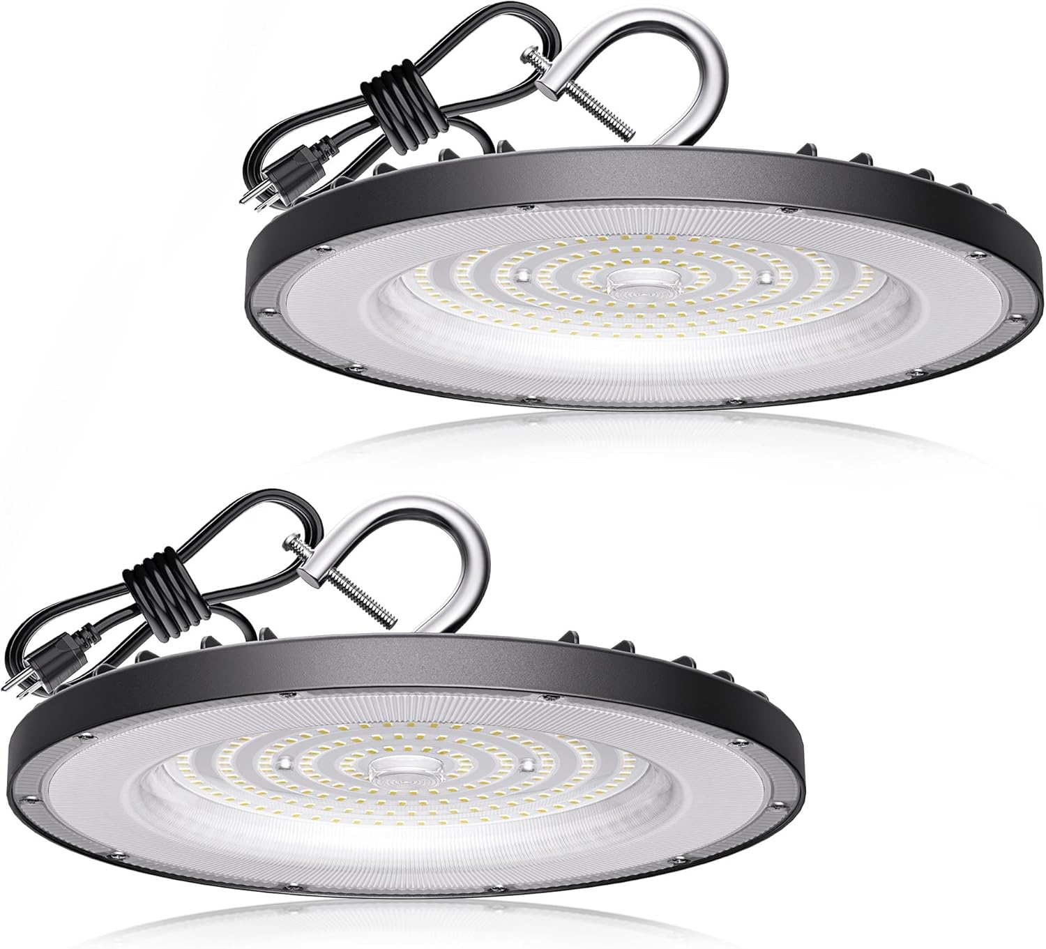 2 Pack UFO Led High Bay Light 200W(800W MH/HPS Equiv.), 30000lm, 5000K Daylight High Bay Led Light with 5′ Cable US Hook, IP65 Waterproof Commercial Light Fixture for Warehouse Workshop Barn Factory