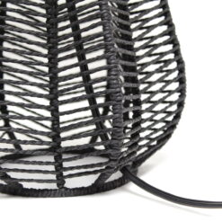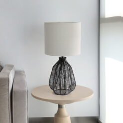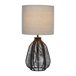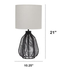 21″ Vintage Rattan Wicker Style Paper Rope Bedside Table Lamp With Light Gray Fabric Shade, Black Description: