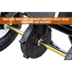- Enclosed gear box with grease fitting shields commercial grade alloy gears from weather, rust and cold.