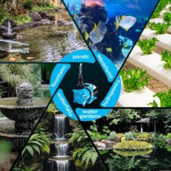 - Suitable for various scenarios: Not only used as pond pump and fountain pump to help build an amazing backyard, it can also be applied for irrigation system, hydroponics, water circulation for outdoor ponds such as koi pond, duck pond. More than fountain pumps submersible outdoor.