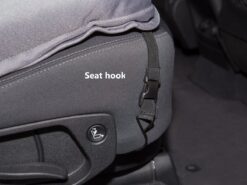 - Non-skid backing, 4 elastic straps with hooks and adjustable headrest straps help ensure the seat protector stays put.