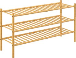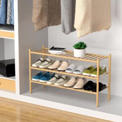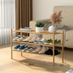 3-Tier Bamboo Long Shoe Rack, Free Standing Wood Shoe Shelf Storage Organizer for Closet Entryway Stackable 35″x11″x20″ (Natural)