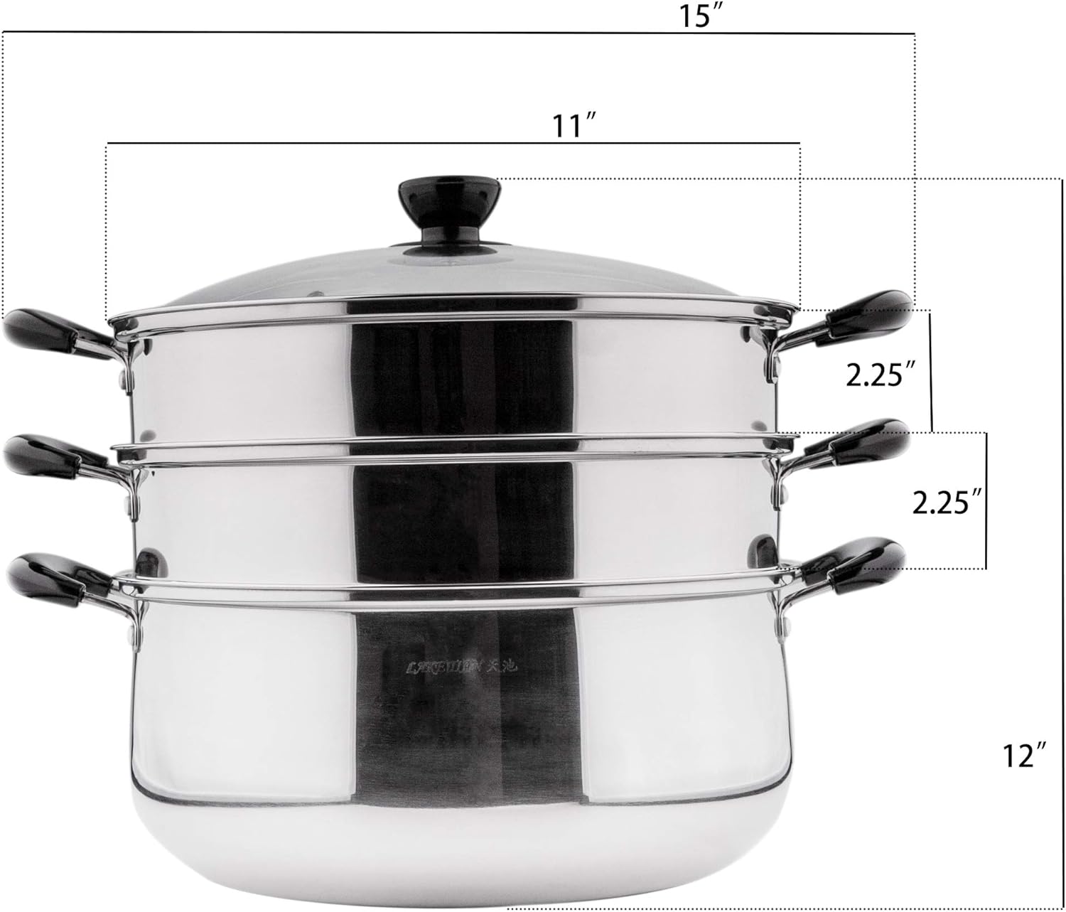 3 Tier Multi Tier Layer Stainless Steel Steamer Pot For Cooking With Stackable Pan Insert/Lid, Food Steamer, Vegetable Steamer Cooker, Steamer Cookware Pot, Vaporeras Para Tamales, Multilayer 16 qt